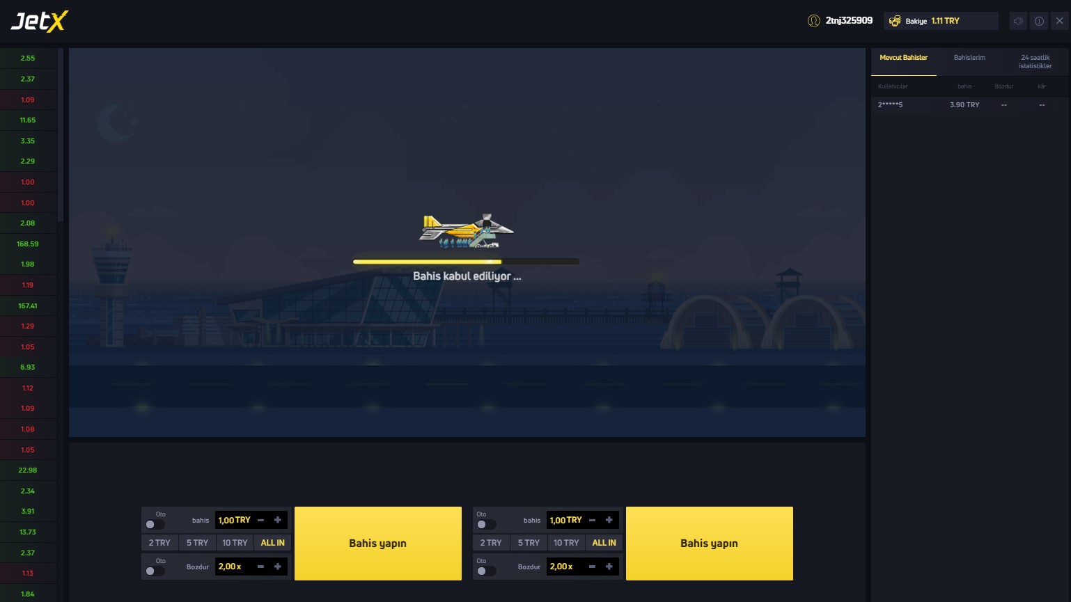 Ayrıca oyun penceresinde otomatik bozdurma diye bir alan bulunur. Bu alana yazdığınız sayı JetX‘i kaçta durdurmak istediğinizdir. JetX diğer ellerde de belirlediğiniz sayıda durur böylece her el bozdur butonuna basmak zorunda kalmazsınız.